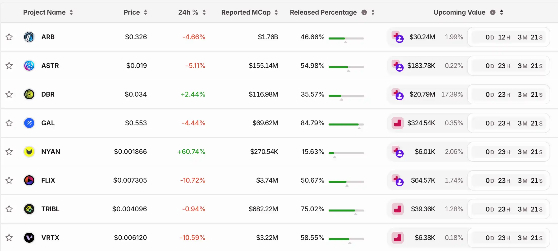 日々の時価総額(資金調達率に反映)とトークンのロック解除