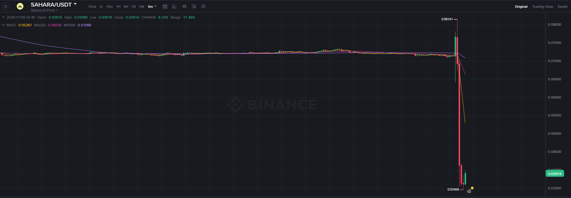 SAHARA 代币价格本日出现暴跌,24 小时跌幅 54.17%
